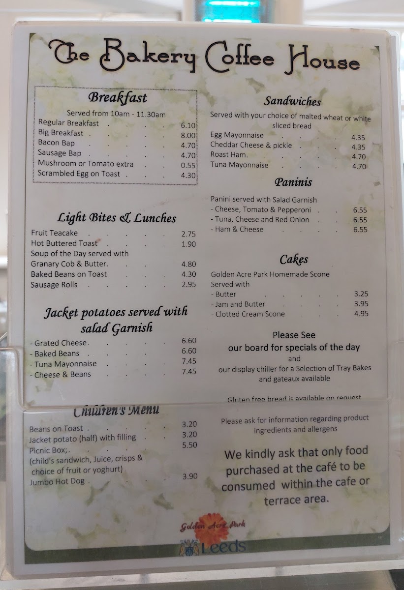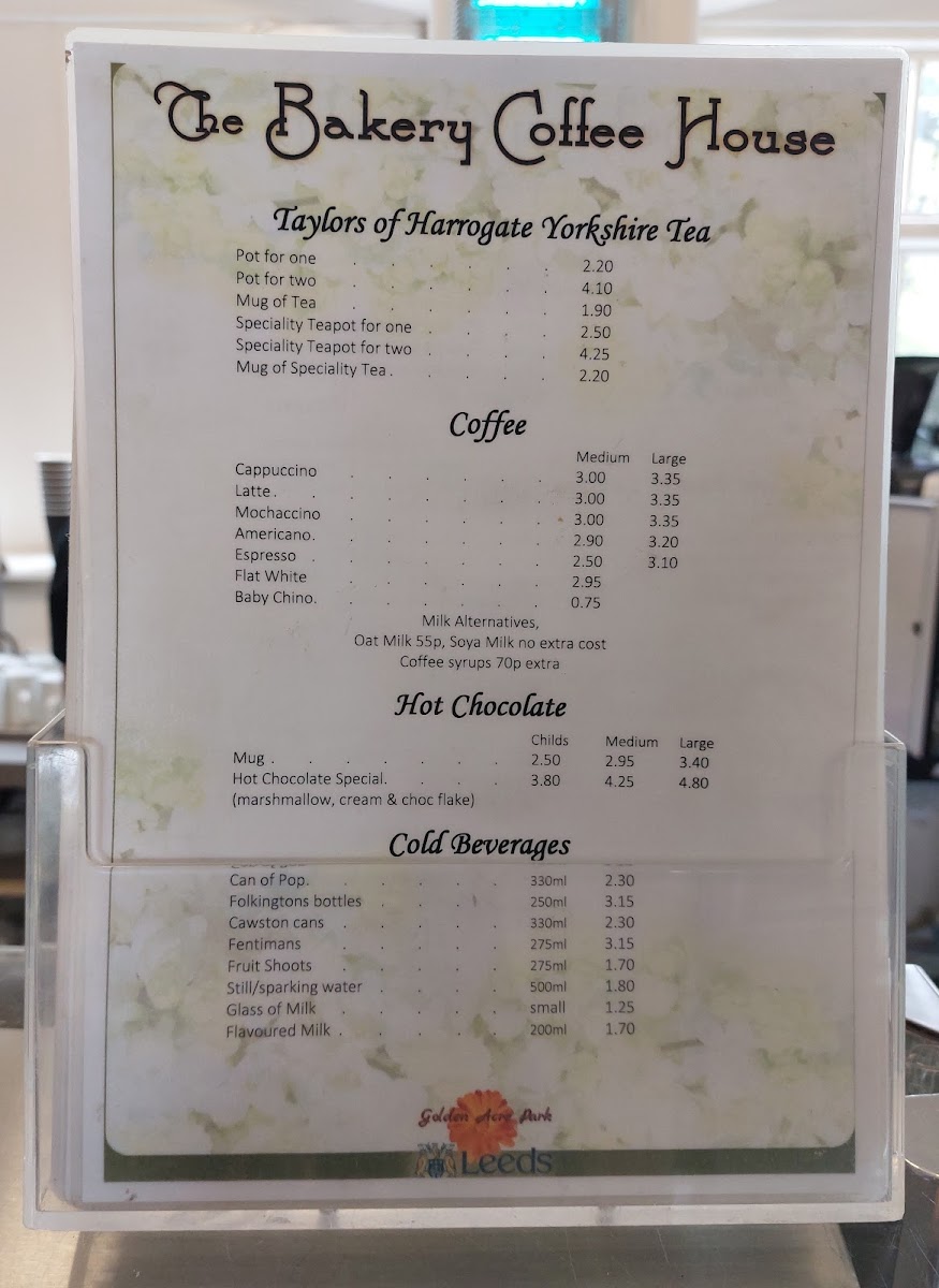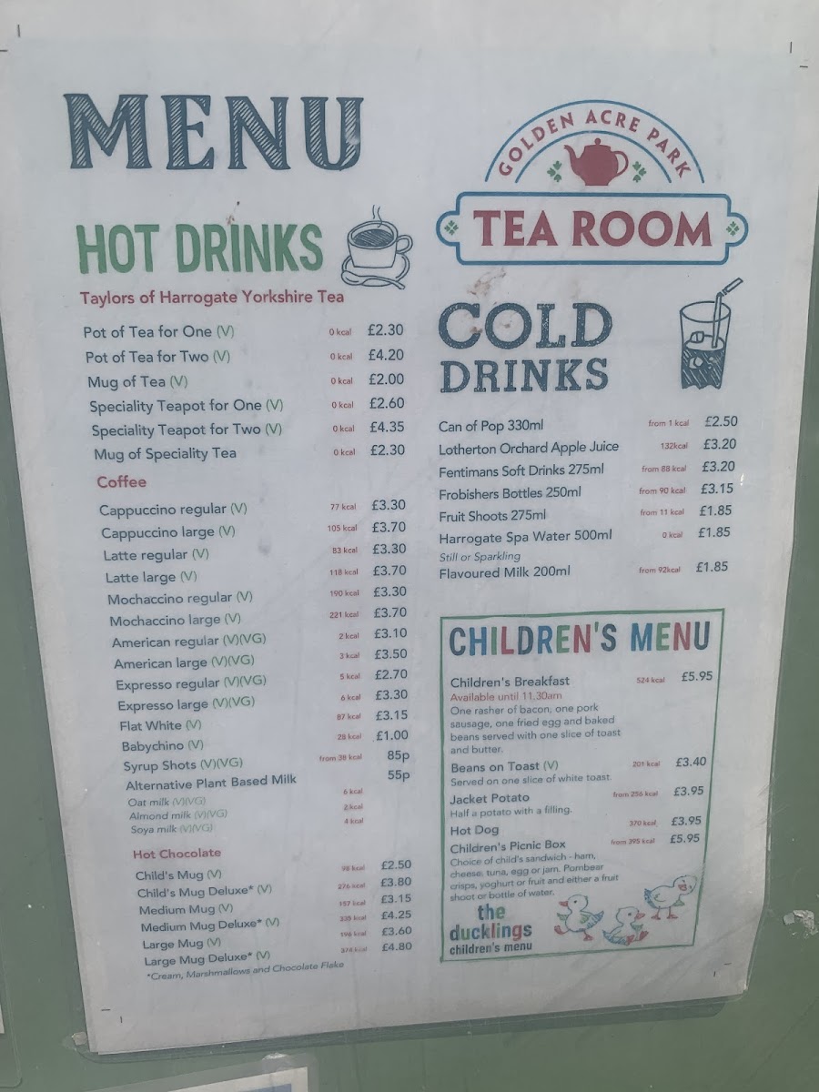 Golden Acre Park Tea Room, nestled within the stunning grounds of Golden Acre Park in Bramhope, Leeds, offers a delightful escape for food lovers and nature enthusiasts alike. As you approach this charming café, anticipate a menu that beautifully balances tradition and freshness. Dine on an array of handcrafted sandwiches such as the classic Egg Mayonnaise and the savory Gammon Ham, each priced affordably. For a lighter bite, the Soup of the Day and Children's Picnic Box cater excellently to families. The ambiance, enriched by conservatory-style seating and a lovely terrace, invites patrons to savor every moment. While the coffee, particularly the flat white, may not be for every palate, the overall coffee selection shines. Don’t miss the tempting array of cakes—perfect for a post-stroll treat. With positive reviews highlighting its reasonable prices and serene setting, Golden Acre Park Tea Room is a must-visit for anyone in search of a memorable meal in nature.